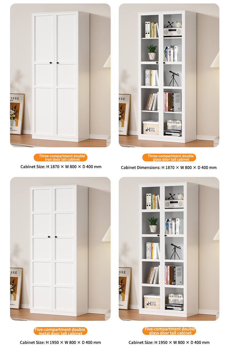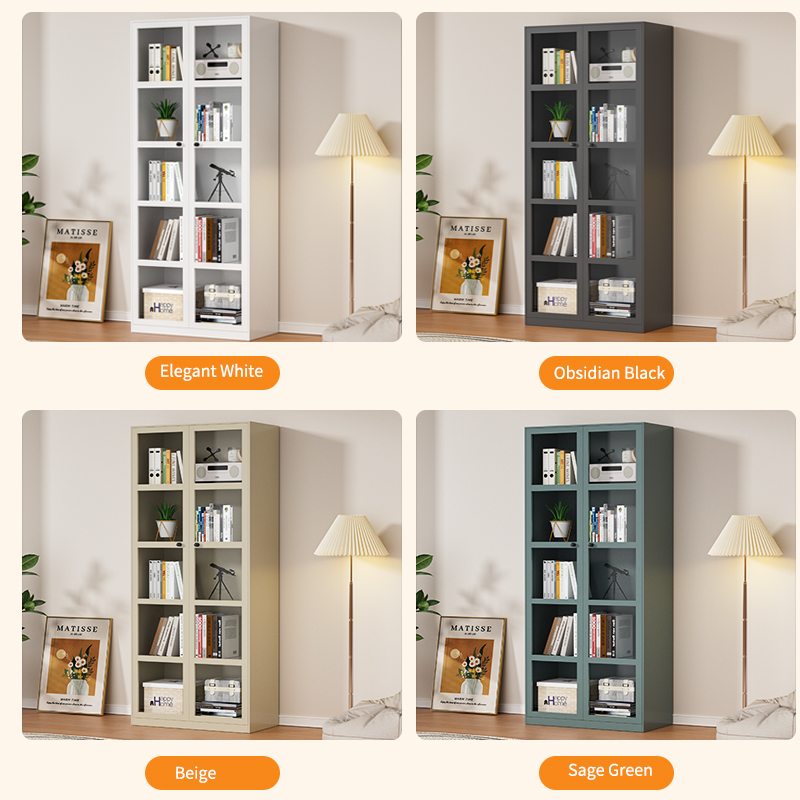 This two-door steel bookcase (H1870W800D400mm) provides sturdy, organized storage for rooms, with generous space for books and display items.