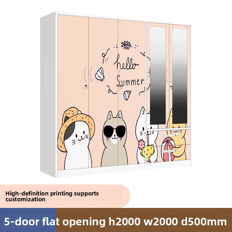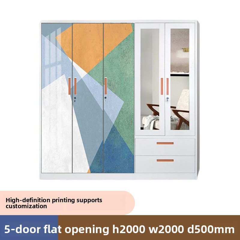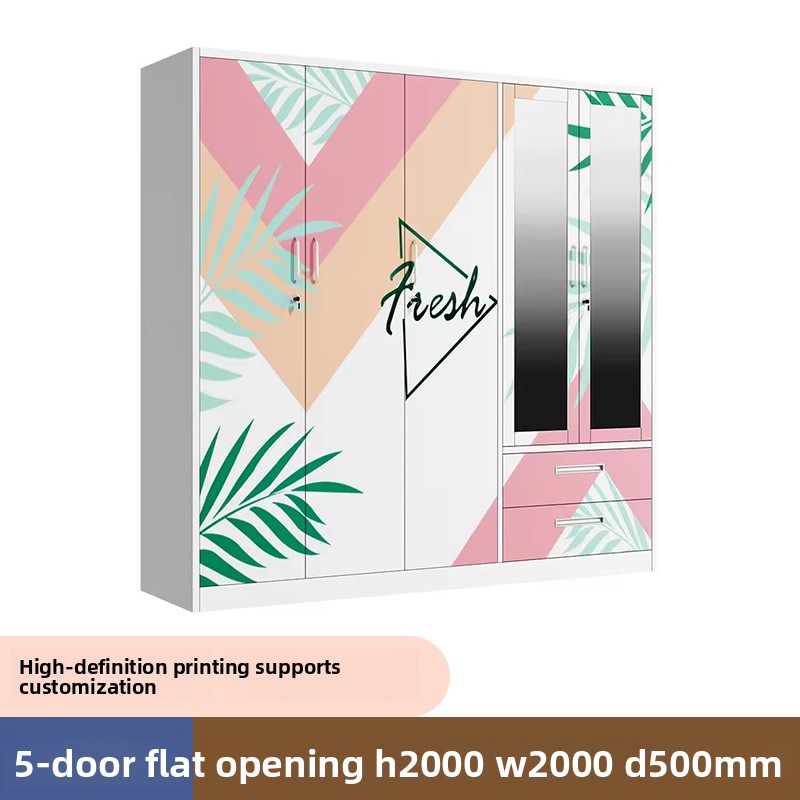 This five-door printed steel wardrobe (H2000W2000D500mm) delivers durable, stylish storage for bedrooms. Its sturdy steel construction and delicate printed patterns offer ample space for clothes, quilts, and daily essentials, ideal for modern homes.